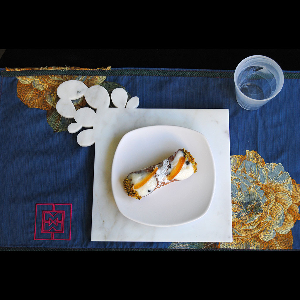 di un tempo. Realizzato interamente in marmo il sottopiatto CHIANU è il corretto spazio su cui esaltare i piatti più